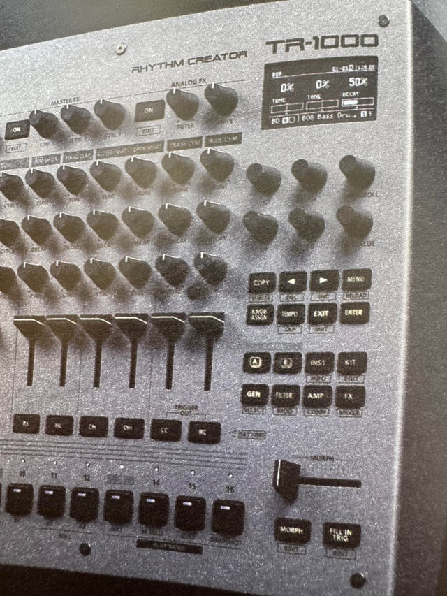The Roland TR-1000 is emerging as the new flagship drum machine and sampling engine. It’s gray appearance brings back the Roland 90’s MC-303 and MC-505 heritage style.